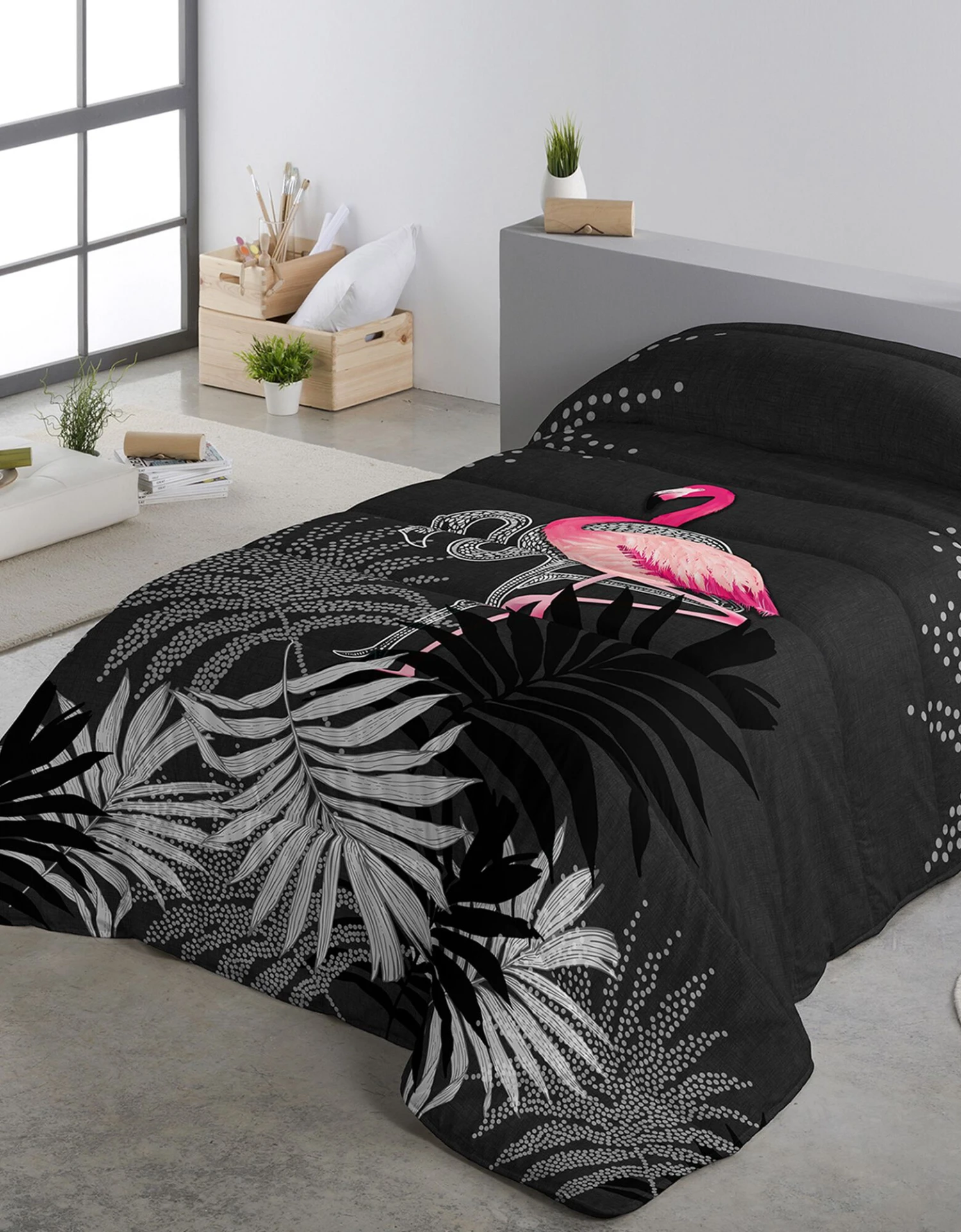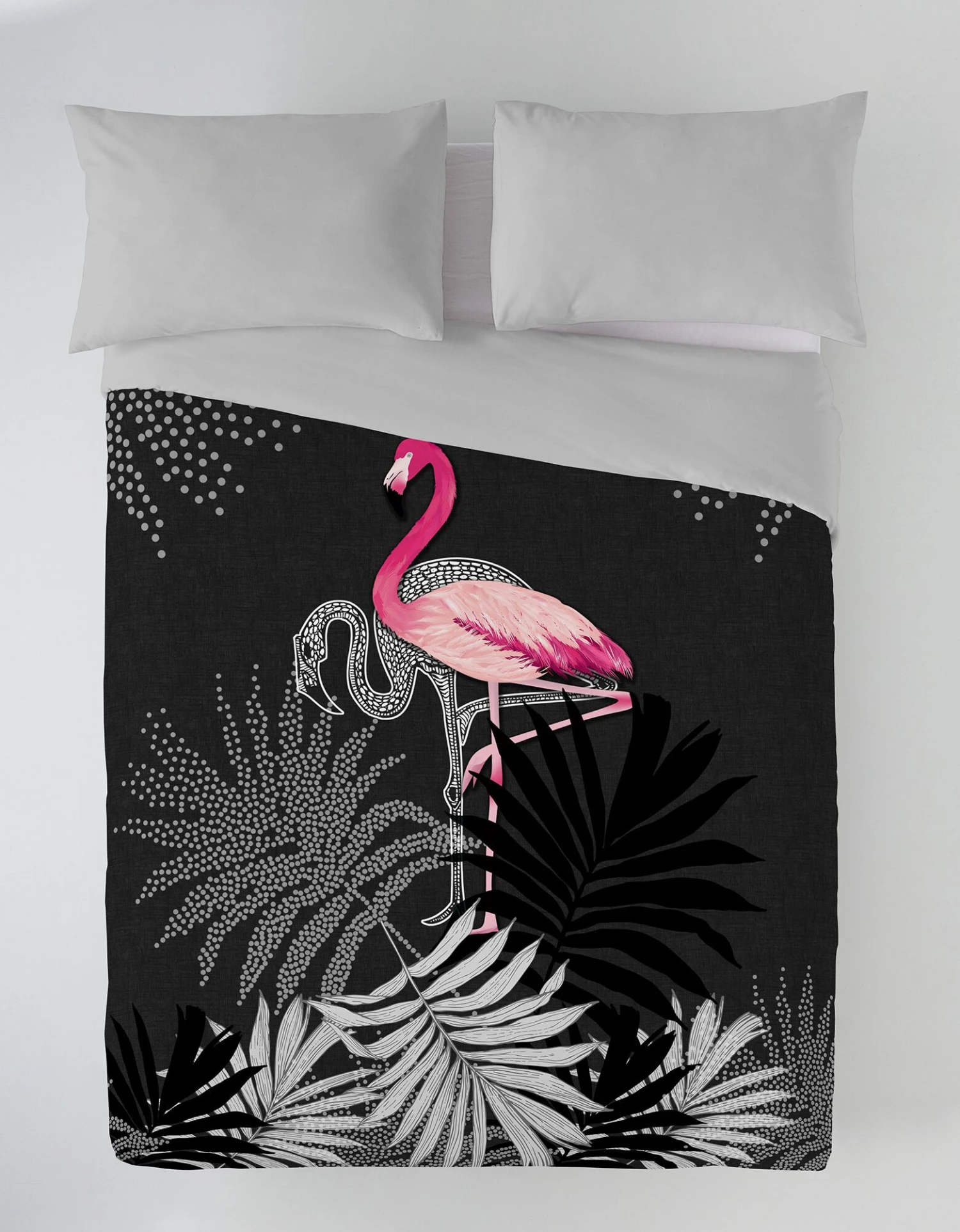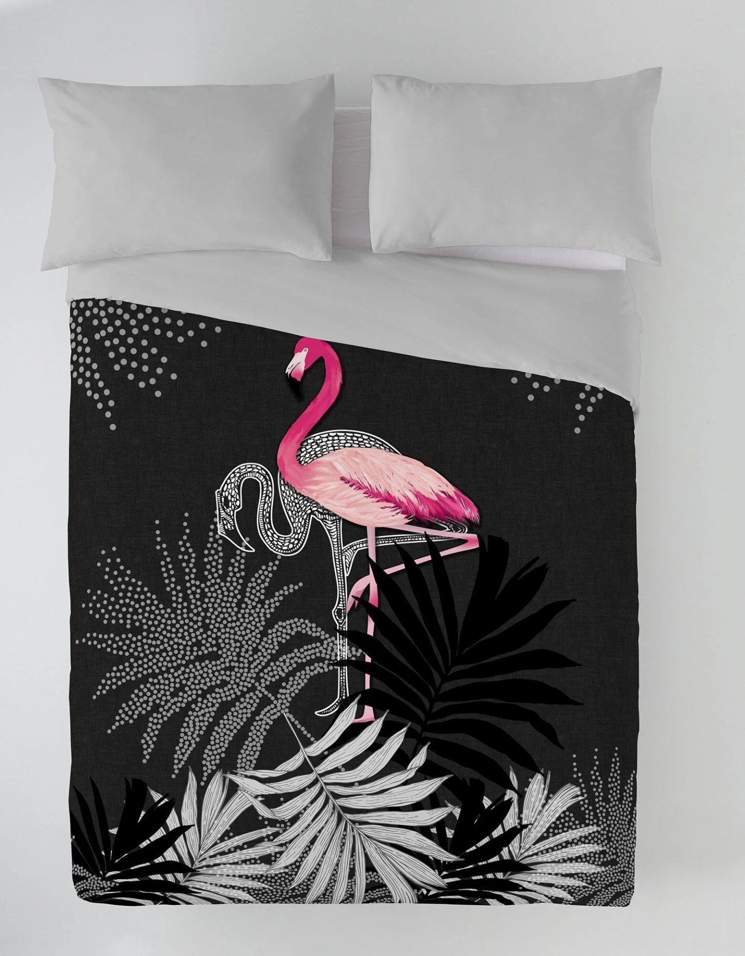 – 2 faces différentes : 1 face imprimée flamant rose de grande qualité, 1 face unie
