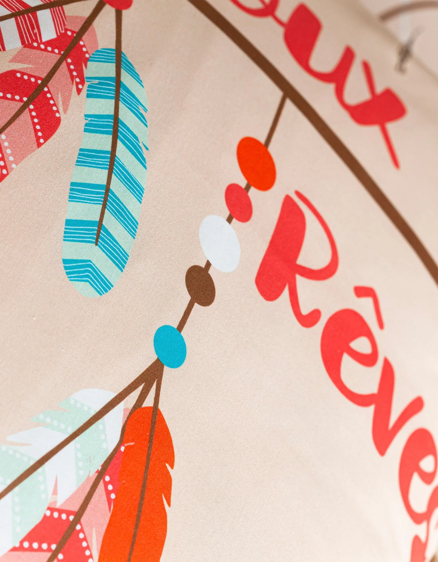 – Taie forme sac (63×63 cm) : motif placé, 2 faces identiques