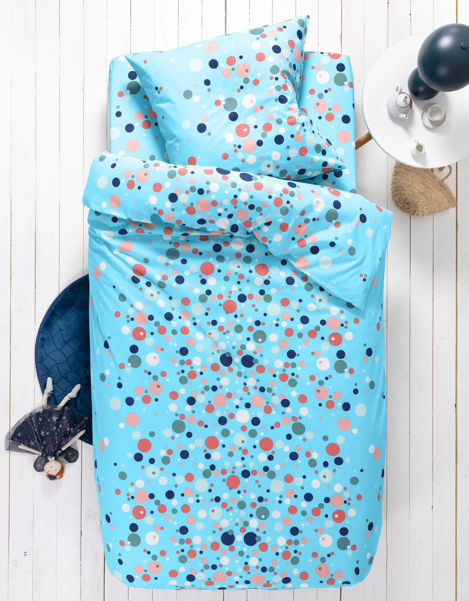 ∙ Housse de couette 1 personne (140×200 cm) : 2 faces identiques. Forme bouteille pour bien border