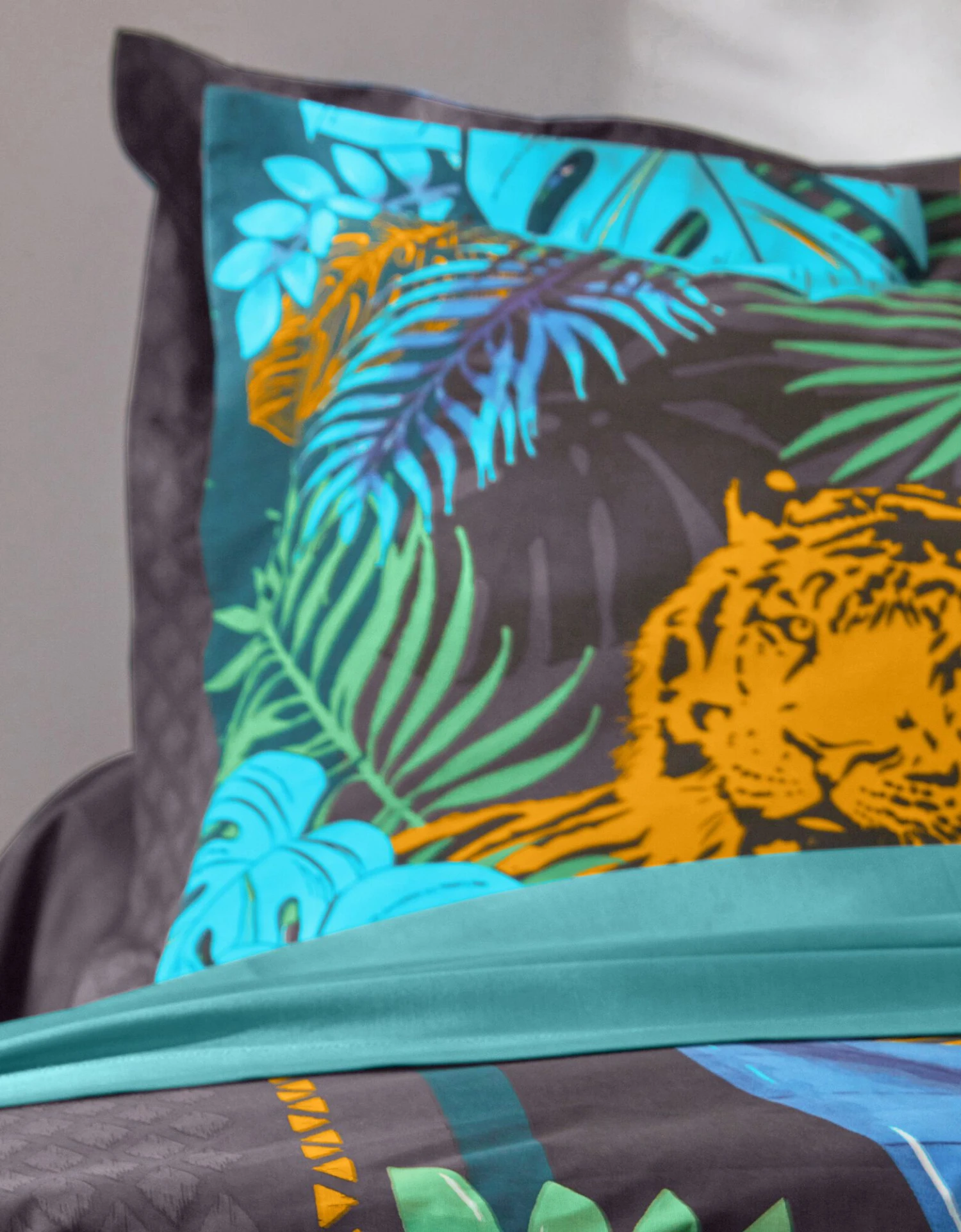 – Taie d’oreiller carrĂ©e Ă motif placĂ©, volant plat, 2 faces diffĂ©rentes