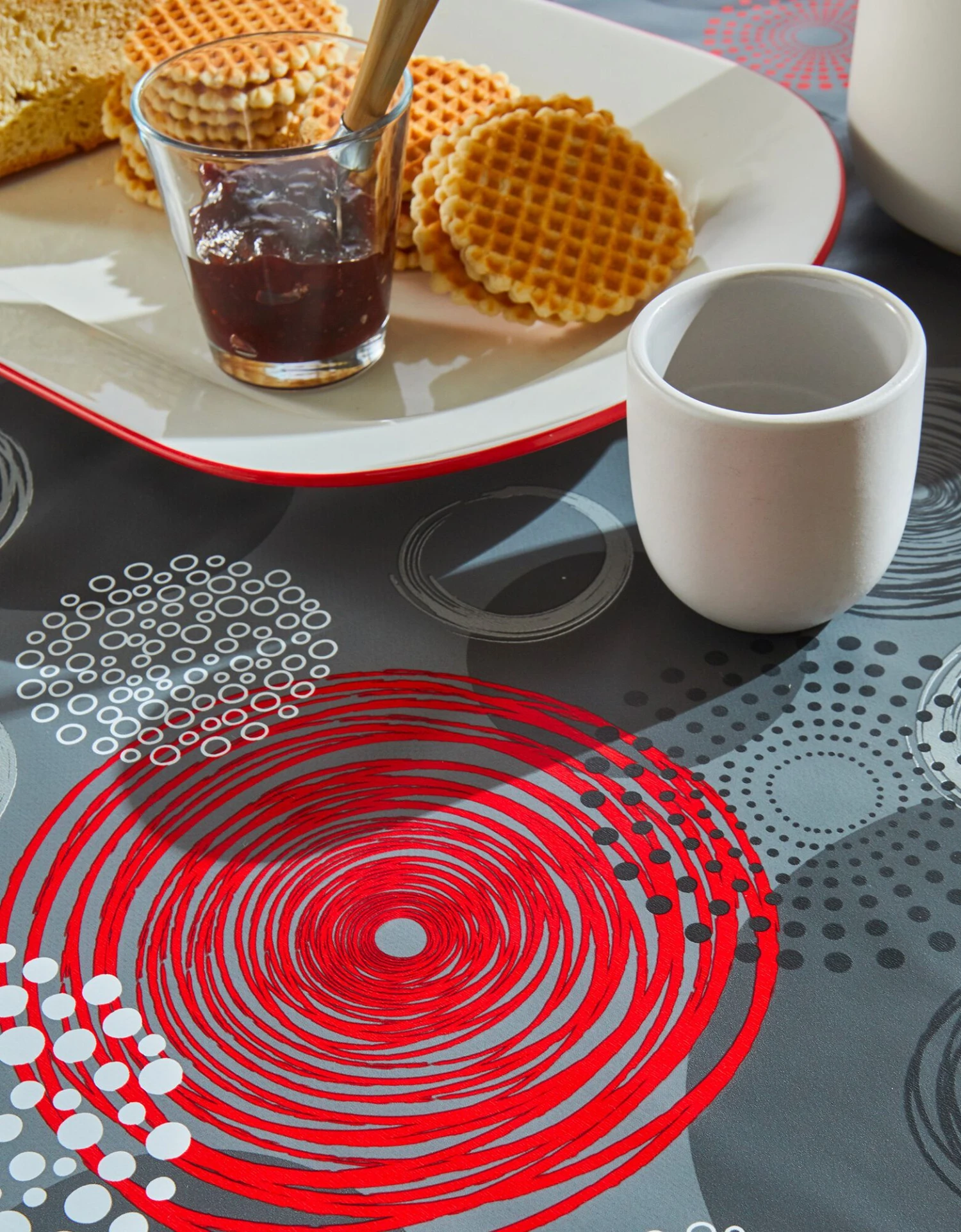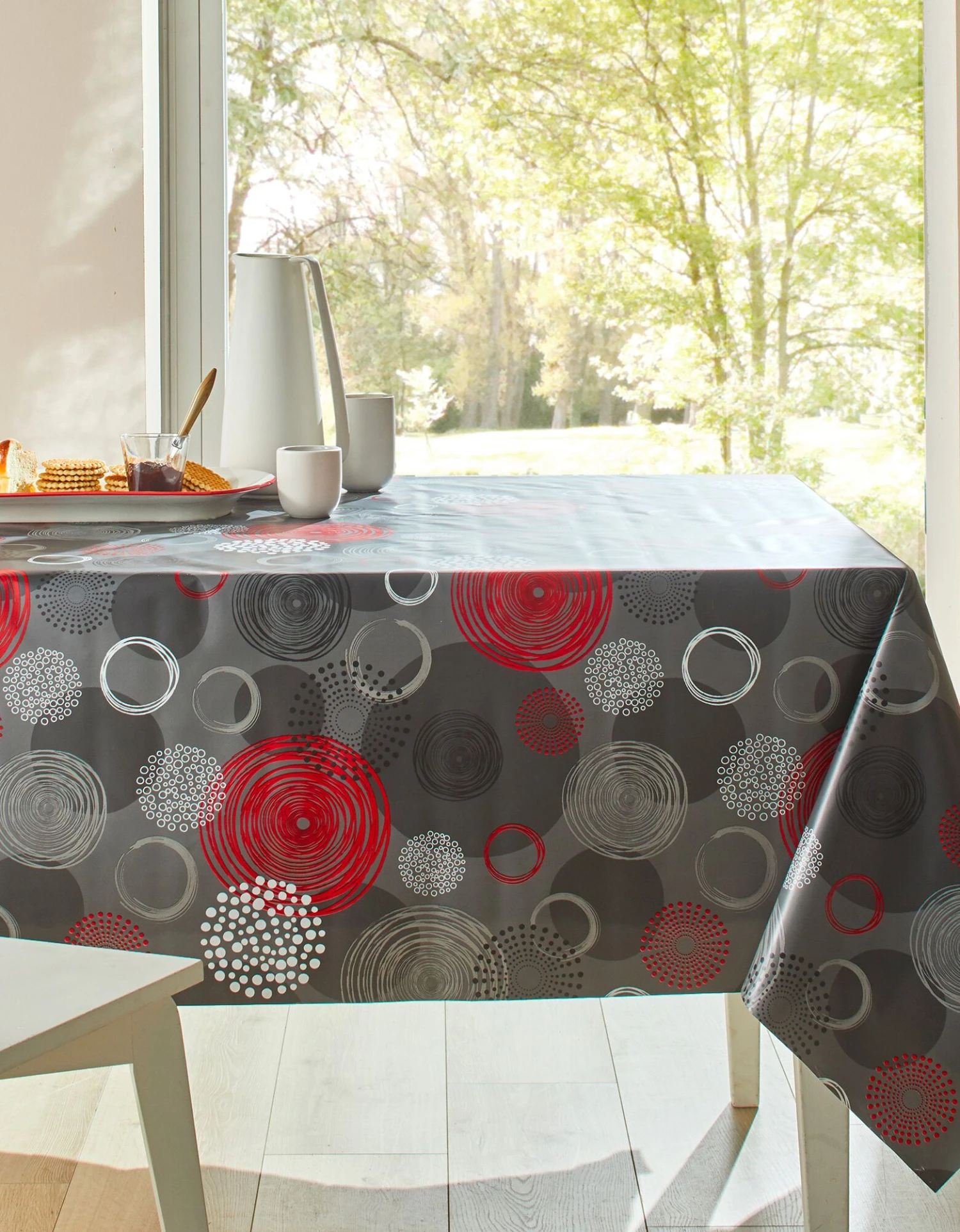– Toile cirée 90% PVC, 10% polypropylène ; qualité imperméable, souple et résistante