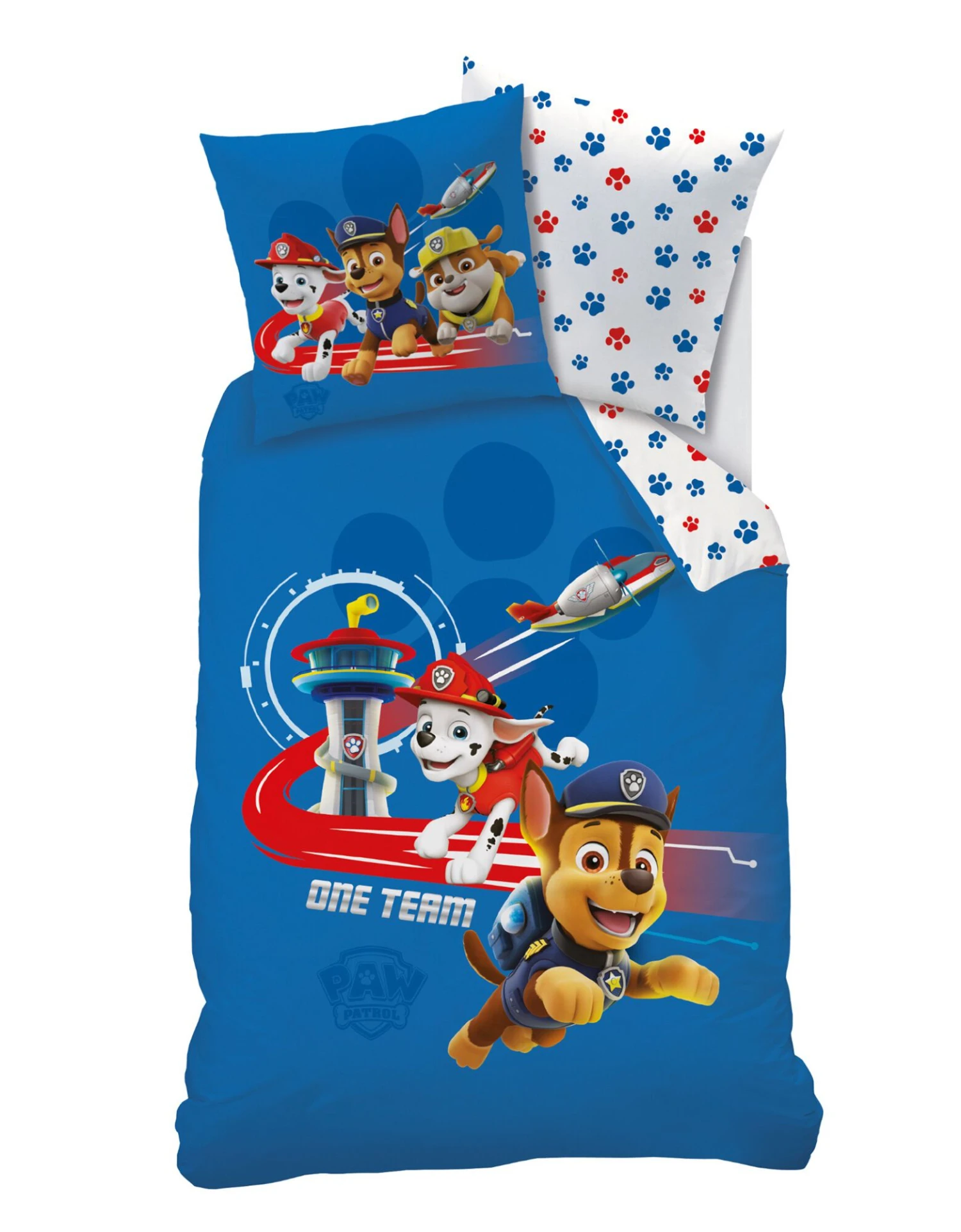 – Housse de couette (140×200 cm) réversible, avec rabat pour bien border : 1 face motif placé, 1 face motif continu coordonné pour changer de décor en un instant !